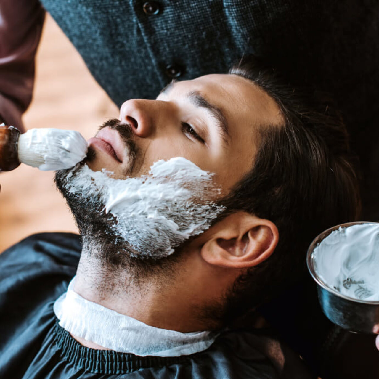 Traditional straight razor shave with premium products and expert technique