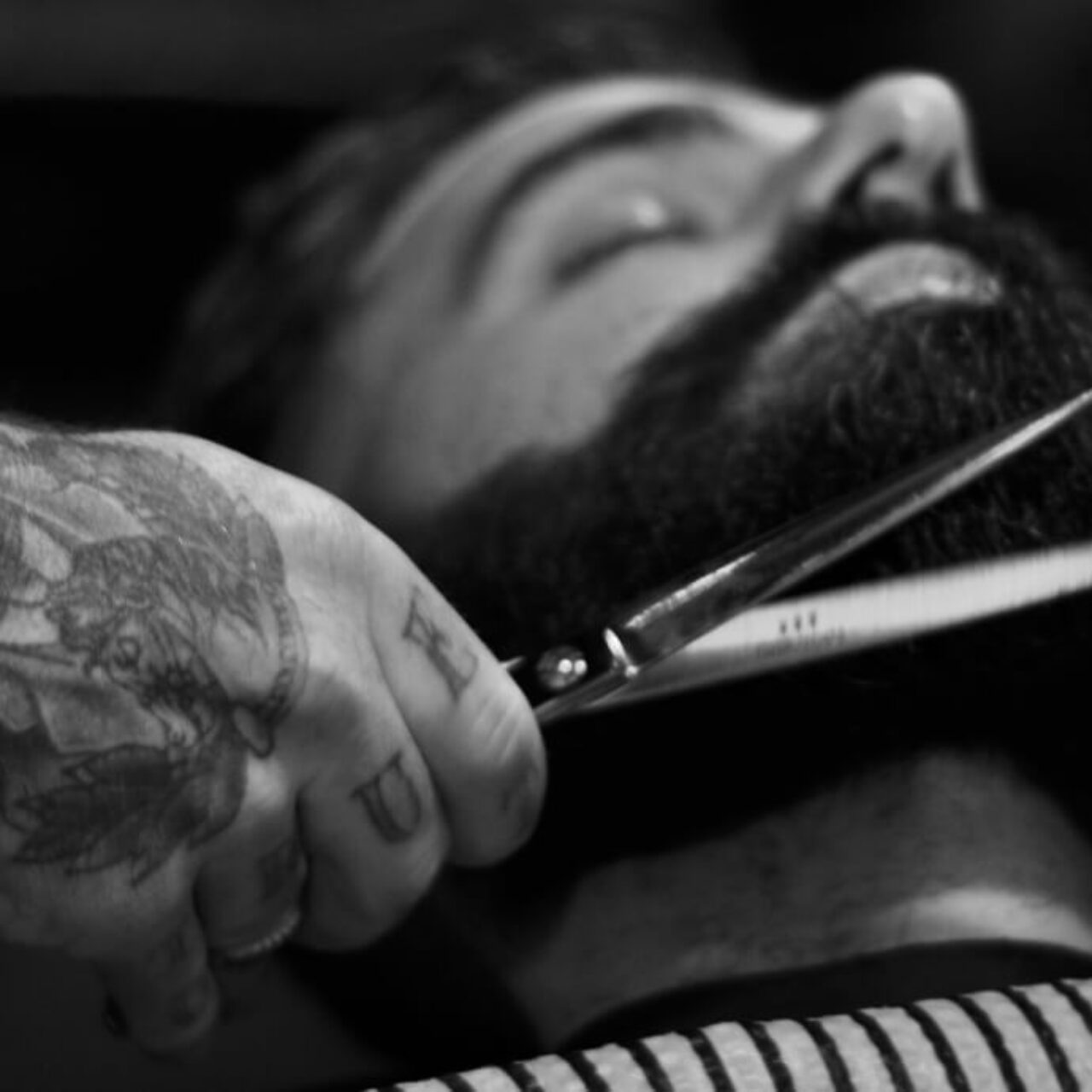 Professional beard sculpting and shaping with precision tools and styling